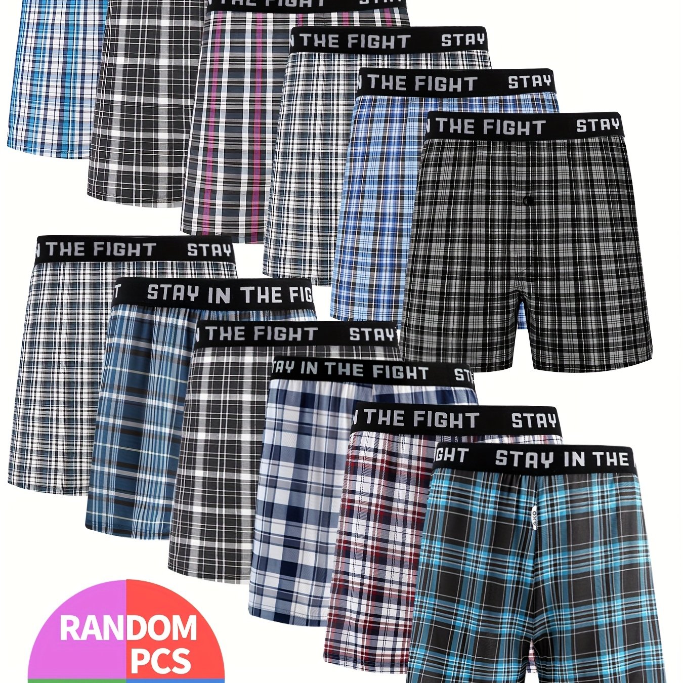 TEMU 12pcs 남성용 체크무늬 화살표 프린트 속옷 - 정규 핏, 신축성 있는 소재, 다양한 색상 및 패턴, 편안한 캐주얼 반바지, 일상적인 반바지 | 세련된 남성용 속옷 | 편안한 피
