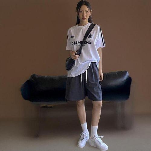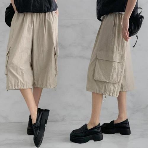 [신상오픈런]여성 키치무드 면반바지 허리스트링 밴딩 건빵 스타일