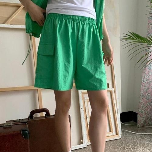 [다잇템]여성 고무줄 건빵 무지컬러 더블포켓 반바지