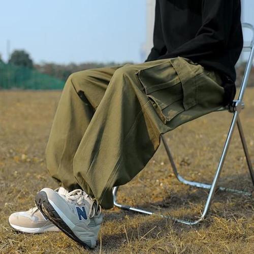 클라민 남성용 사계절 와이드 카고 팬츠 트레이닝 스트링 밴딩 바지