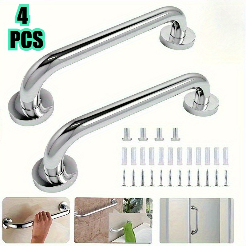 TEMU 4개 스테인리스 스틸 욕실 안전 손잡이 - 곡선/수직 디자인, 조절 가능한 높이, 노인 및 장애인용 쉬운 설치, 휠체어 & 욕조 접근성, 내구성 강한 구조 (부식 방지)