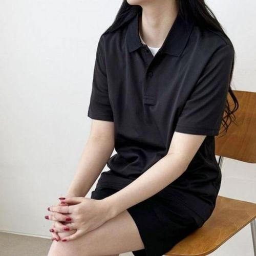 [다잇템]여자 슬릿 절개 라운드넥 스판 검정 반팔티