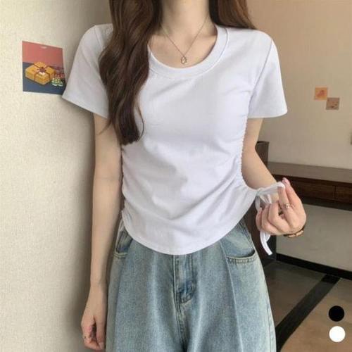 [다잇템][다잇템] 여성 슬림핏 사이드셔링 드로우코드 흰색 검정 반팔티_22141649_588872