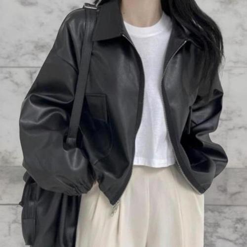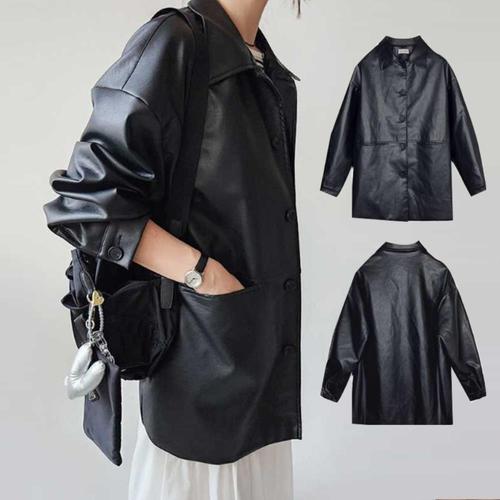 [다잇템][다잇템] 여성 검정 스타일 아방가르드 레더 일상 빅사이즈 재킷_23740602_588872