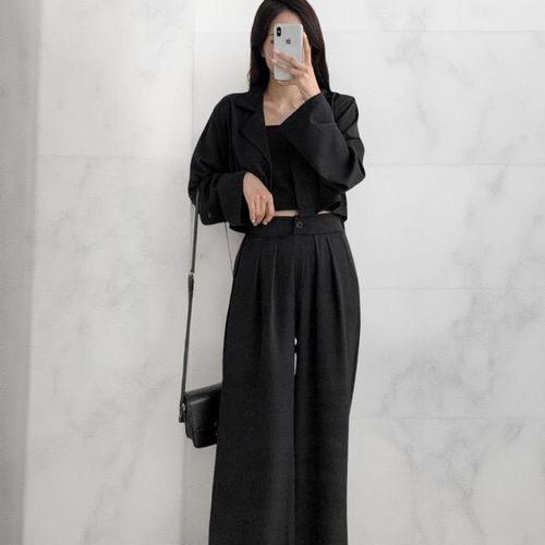 [다잇템]여성 탱크 MAXI 핀턱 와이드핏 검정 자켓 세트