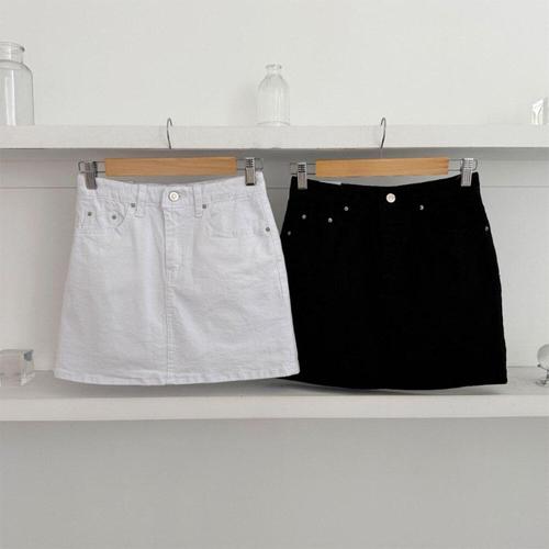 [다잇템]여자 검정 코튼 에이라인 미니스커트