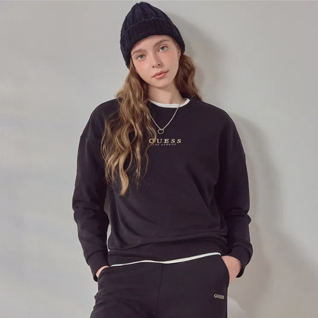 게스언더웨어 자수로고 남성 맨투맨 - 블랙
