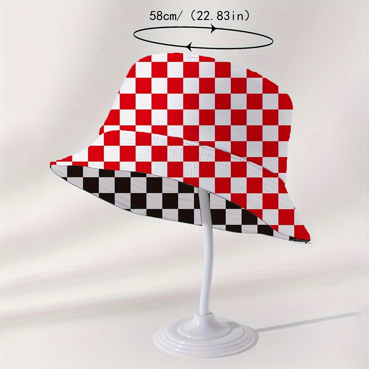 TEMU 체크무늬 프린트가 있는 반사형 버킷 모자 - 야외, 해변 및 여행용 남녀 공용 어부 모자, 폴리에스터, 손세탁 가능, 여행 액세서리 | 체크무늬 패턴 모자 | 폴리에스터 버킷 모자|벙거지모자