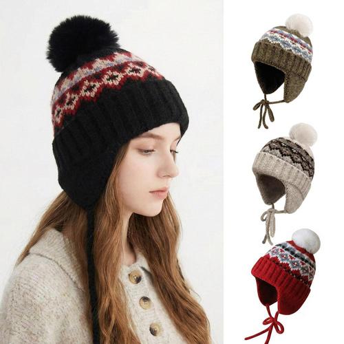 TEMU 여성 가을-겨울 빈티지 따뜻한 비니 | 변환형 귀 보호 드로스트링 모자, , 스트레치 핏, 손세탁 가능, 경량.