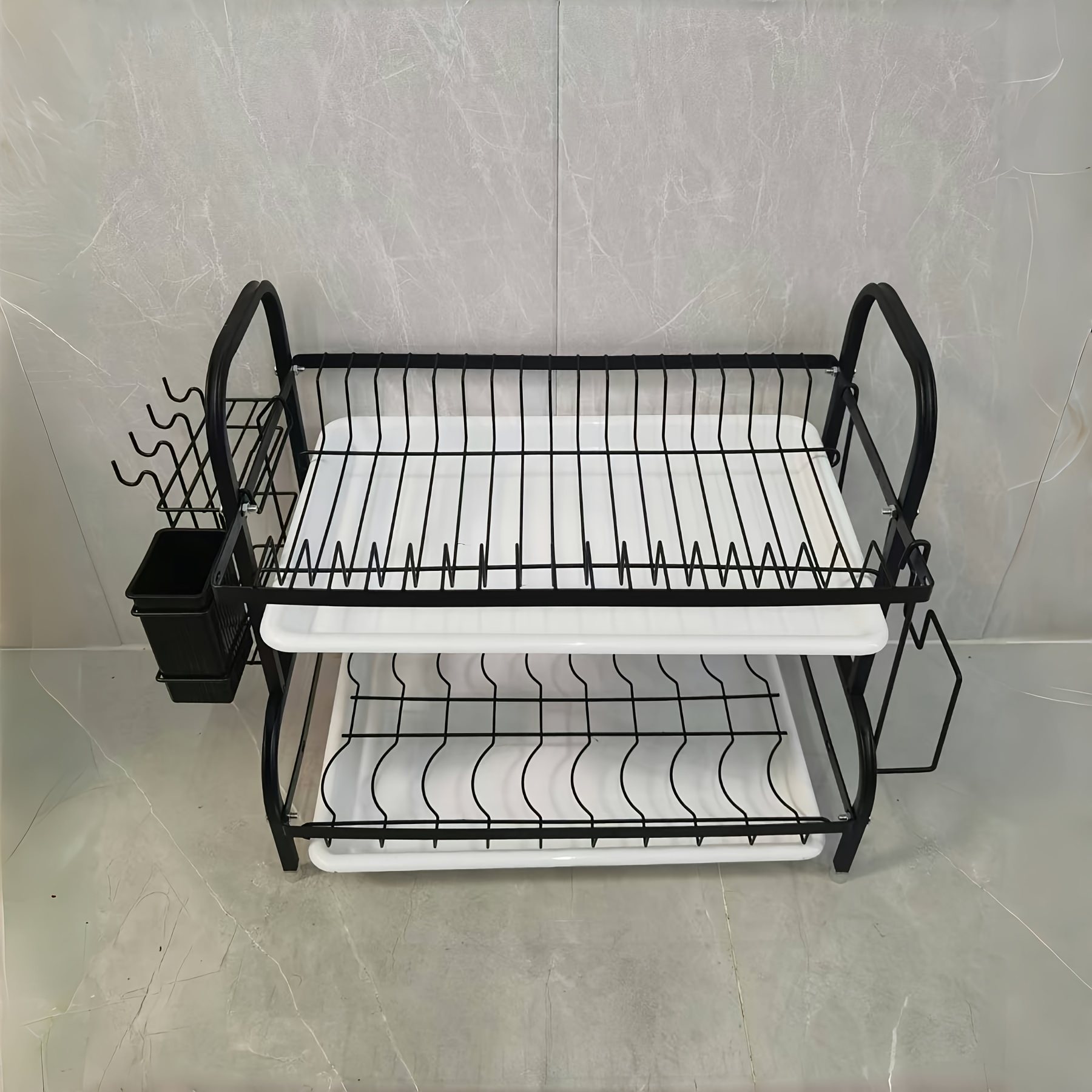 TEMU 2층 스테인레스 스틸 주방 접시 선반, 접시 홀더 포함 - 접시, 그릇 및 식기용 공간 절약형 카운터탑 정리함, 다목적 보관 선반, 조립 필요 없음, 내구성 있는 금속 구조, 주방 정리함 및 보관함, 랙