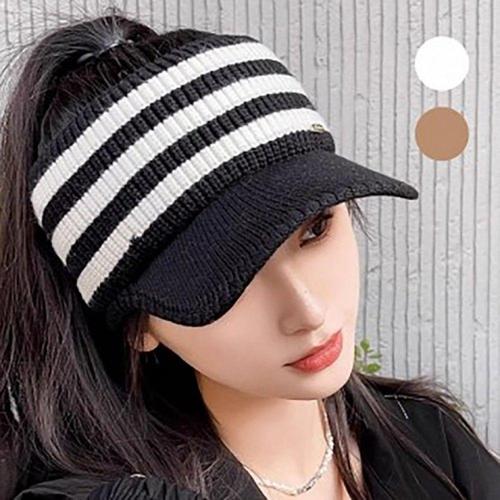 골프용 니트 선캡 스트라이프 썬바이저 겨울 햇빛차단 모자 WFL9E38