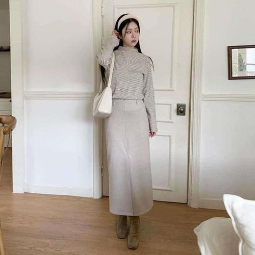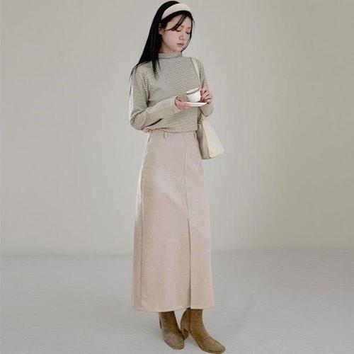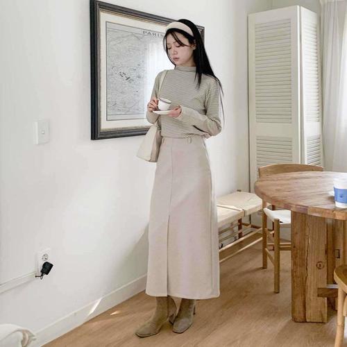 [신상오픈런]여성용 겨울 롱 H라인 스커트 앞트임 출근 스타일