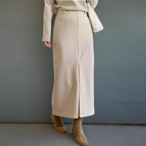 [신상오픈런]여성용 겨울 모직 H라인 롱 스커트 출근 스타일 앞트임