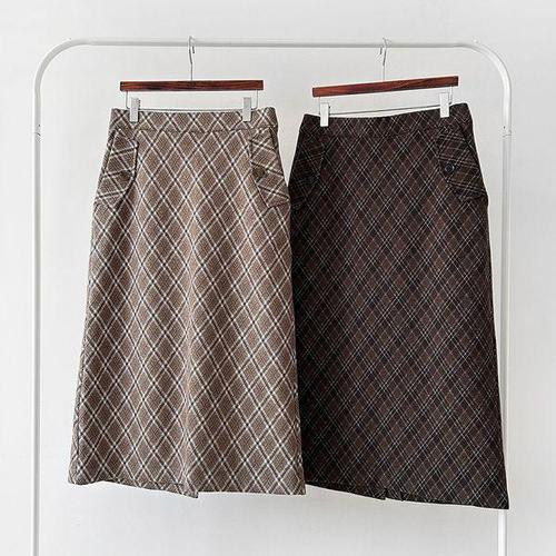 [옷자락]여성 겨울 하객용 체크 패턴 롱스커트 뒤트임 포켓 일자형