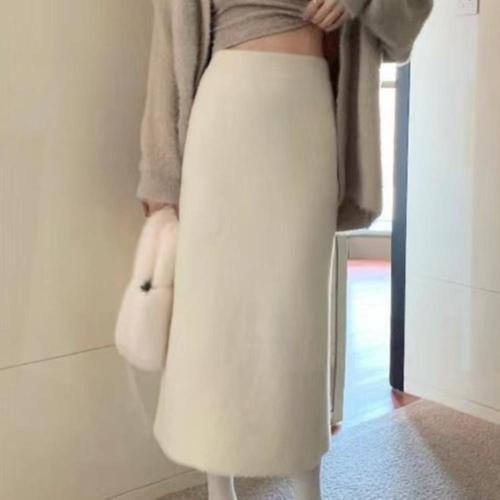 스커트 롱 모직 가을 겨울 여성용 힙업 뒤 기모 트임 아이템 도톰 정장 트렌디 HT4