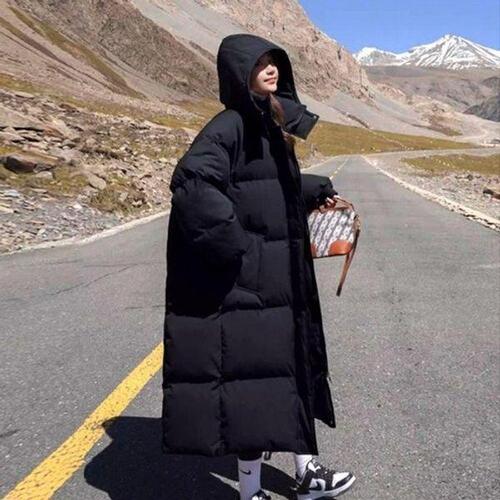 여성 겨울 롱패딩 후드점퍼 따뜻한 롱다운 발목기장 보온 롱코트형 아우터