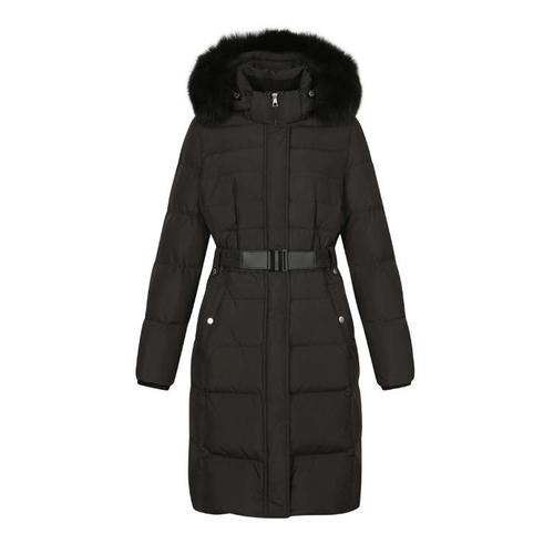 [팬텀]겨울 여성 벨티드 폭스퍼 후드 덕다운 롱패딩 점퍼 / 221D4JP104_BK_IC