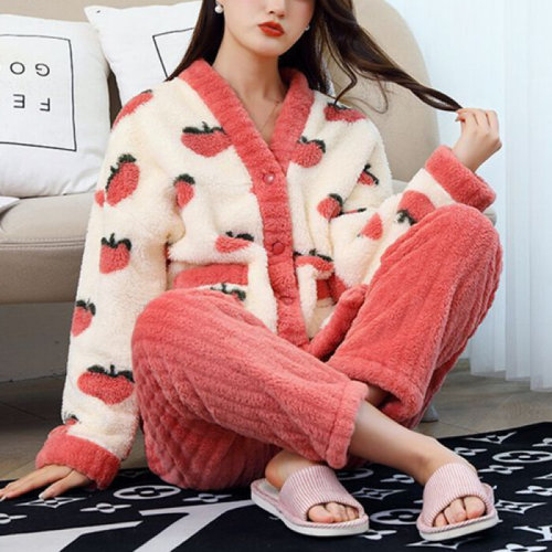 나바바 / NT1238 포근 밍크 털 복숭아 수면잠옷 세트