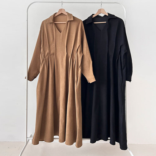H스타일(OP)모르핀턱브이넥원피스 겨울 원피스 OPS 드레스 데일리룩 빅사이즈
