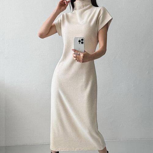 [미라클세븐]여성 하이넥 반집업 기모 롱원피스 겨울 옆트임 투웨이 드레스