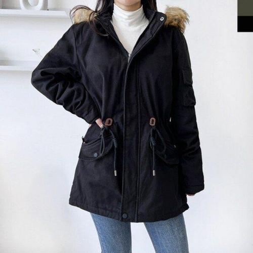 [옷자락]여자 후드퍼 털뽀송 하프야상 겨울 허리조절 점퍼
