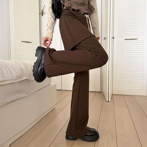 떳다그녀 엔느비 겉기모 커버랩 힙 스커트 밴딩 바지 레이어드 스트랩 플리츠 겨울 주름 부츠컷 팬츠
