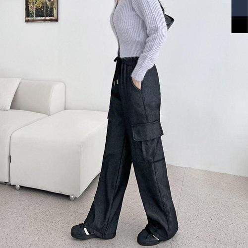 [옷자락]여성 겨울 기모 밴딩 일자핏 골덴 카고팬츠
