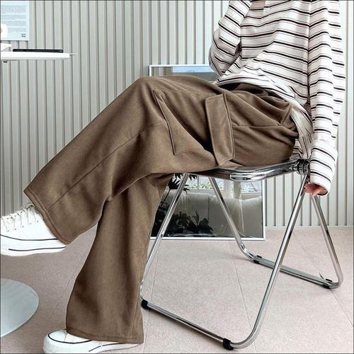 UPPERCUT 남녀공용 겨울용 융기모 루즈핏 카고바지 통바지 와이드핏 캐쥬얼 빅사이즈 자체제작