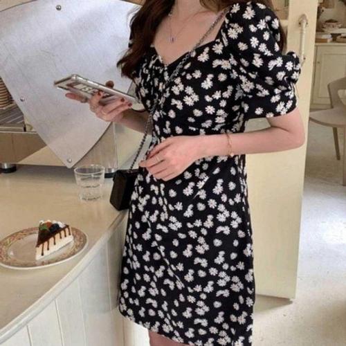 (스타일하우스) 원피스 OPS 플로아 원피스 미니 하객룩 결혼식 피로연 버튼 A라인