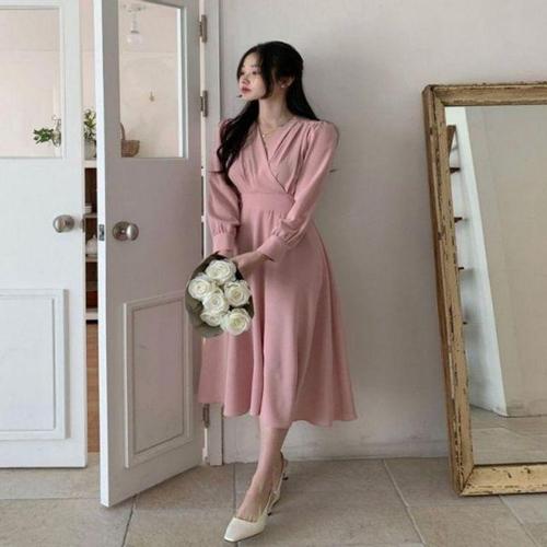 여자원피스 뒷밴딩 결혼식룩 여자 러블리 가을 WFLMSNA