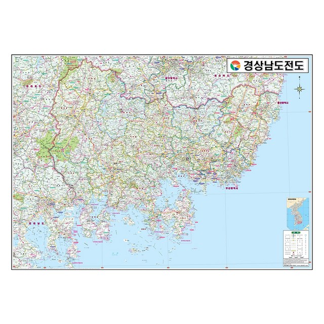 지도닷컴 경상남도 행정지도 150 x 110 cm + 전국행정도로지도