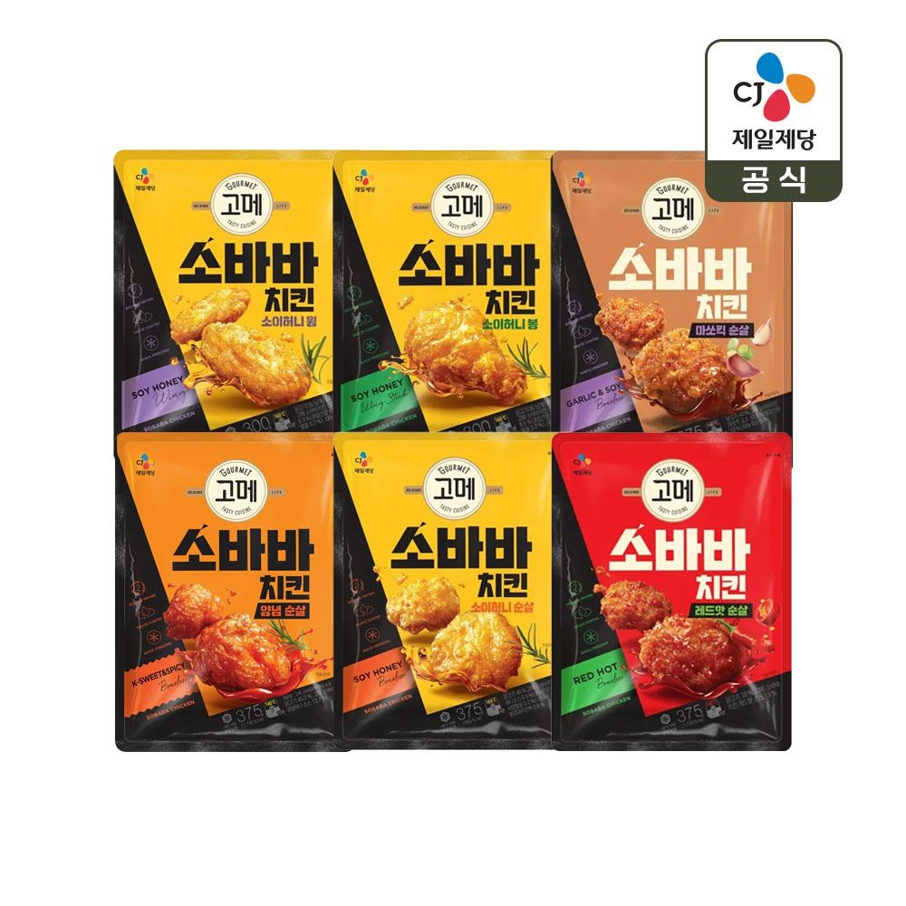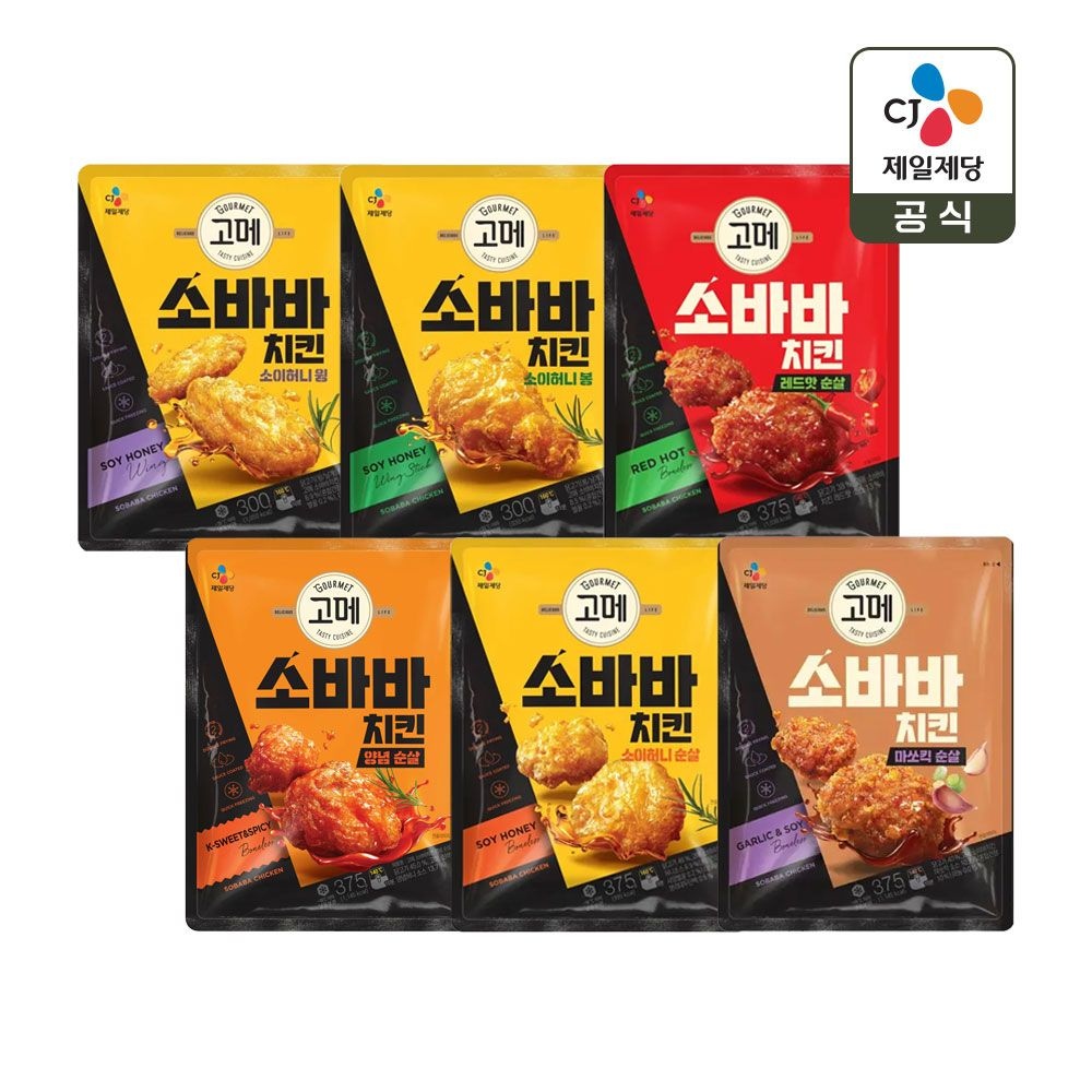 [CJ제일제당]고메 소바바치킨 소이허니 순살 375g x2개+양념순살 375g x2개+레드핫 순살 375g x2개