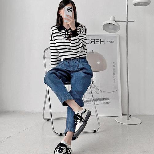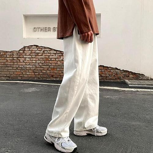 [다잇템]남자 크림진 넓은 고무줄 롱팬츠 남친룩 청바지 (9677115A)