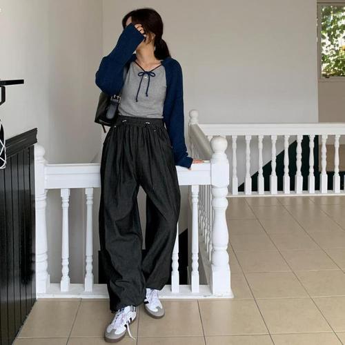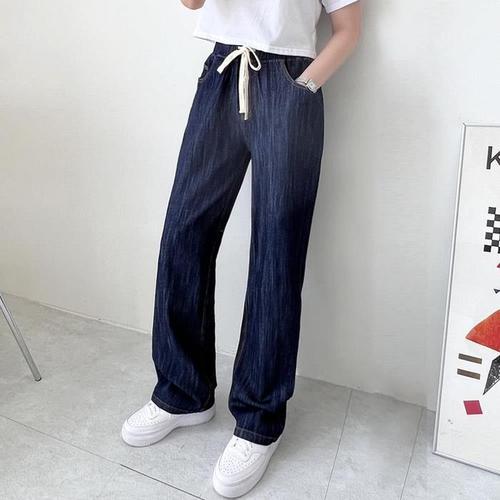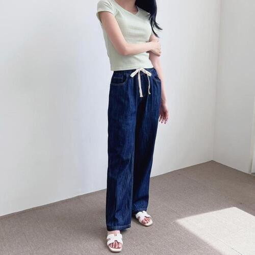 [다잇템]여자 고무줄 드로우코드 와이드진 청바지 (11050766A)