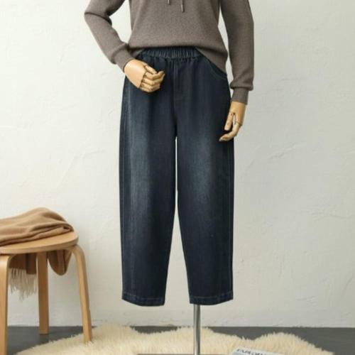 [다잇템]여성용 넓은 워싱 중청 면원단 고무줄 청바지