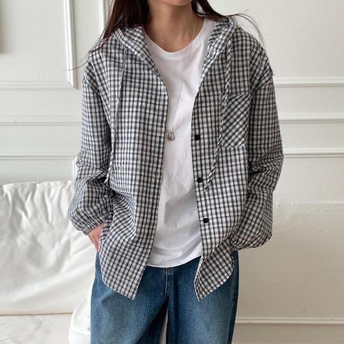 여성 봄신상 고방체크 후드 블라우스 셔츠 21DS-WBL-5126-블랙