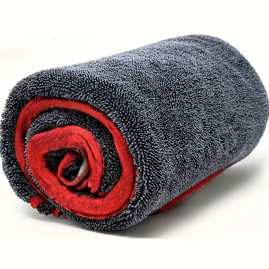 TEMU BDLNKAKK XXL 특대형 극세사 차량용 타월 (스위블 루프 포함) | 차량, 트럭, 보트용 두꺼운 고강도 흡수성 폴리에스터 원단, 레드 그레이 색상 매칭 전문가용 차량 미용 타월