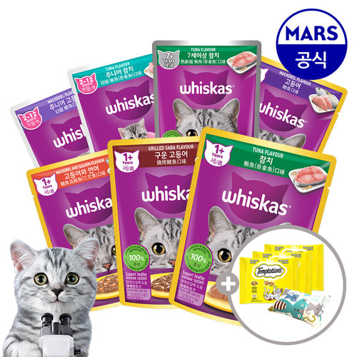 위스카스팩 파우치 12개 골라담기+캣닢쿠션+템테이션12gx3팩