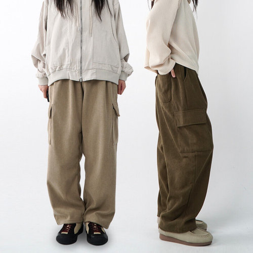 오엔엘 / 여자 카고 융털 코듀로이와이드팬츠 골덴바지 핀턱와이드팬츠