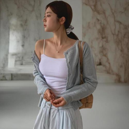 슬림핏 크롭 이너 골지 민소매 끈나시 UTS-240528