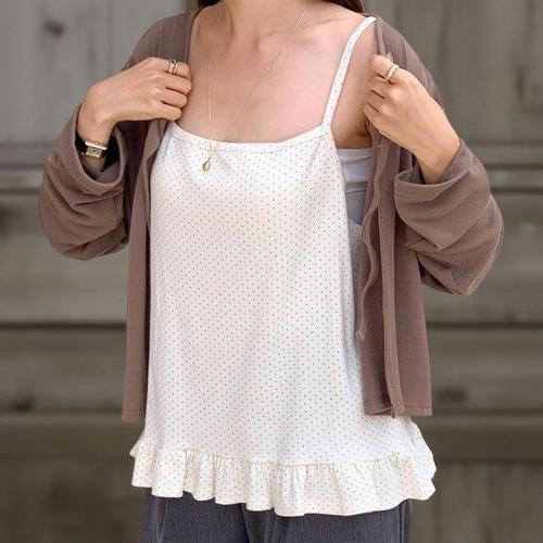 [신상오픈런]여성 프릴 도트 나시 빅사이즈 신축성 골지 끈 이너티