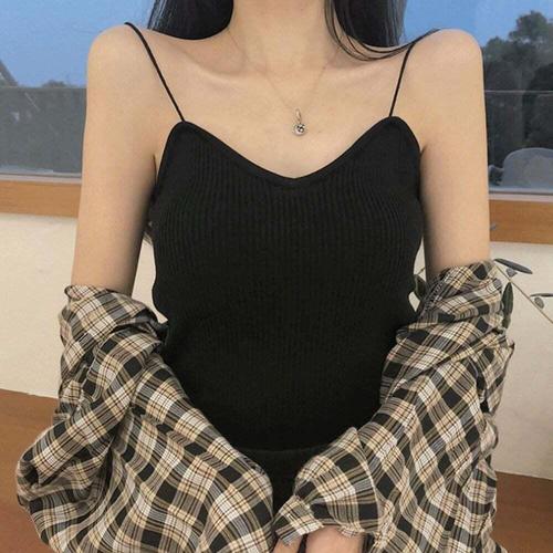 레이어드 골지 여름 끈나시 니트 브이넥 이너 봄 봄 가을 여름 여성 여자