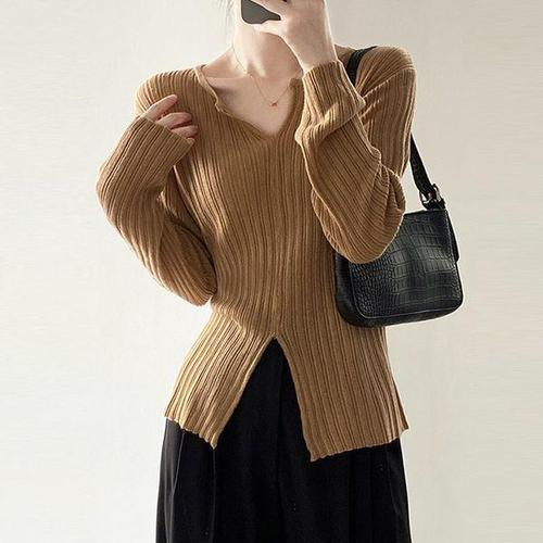 [무드무드]러글릿 오픈넥 골지 트임 니트