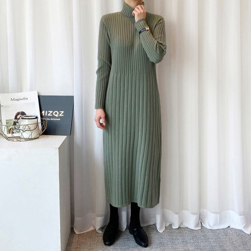미즈큐즈 / 터틀넥 목폴라 골지 A라인 롱 니트 원피스 빅사이즈까