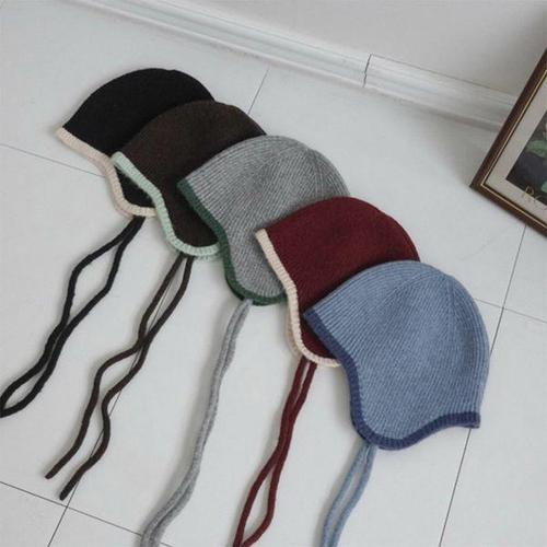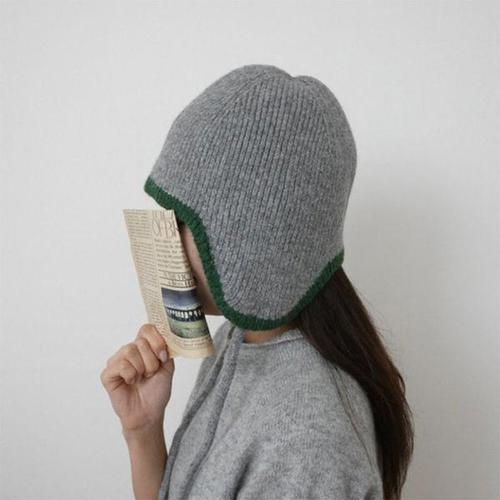 [다잇템]여자 골지니트 콘트라스트 보닛 이어플랩 비니
