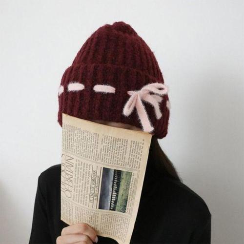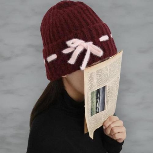 [다잇템][다잇템] 여성 폴딩 리본 분홍 사랑스러운 골지 콘트라스트 울 스웨터 비니_23740373_588872