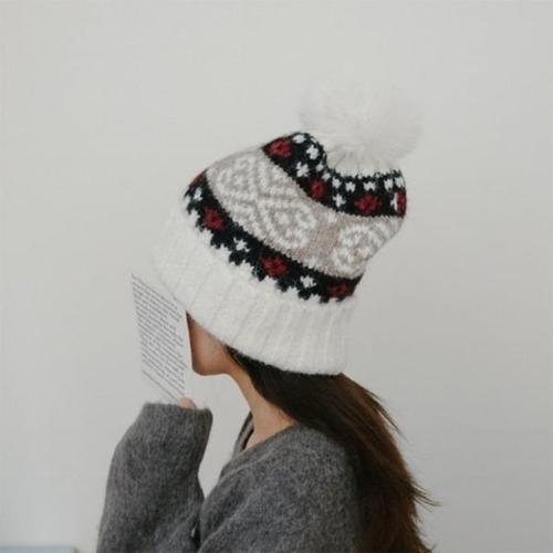 [다잇템][다잇템] 여성 방울털 골지 폴딩 FW 남성용 콘트라스트 스웨터 비니 패턴_24095068_588872