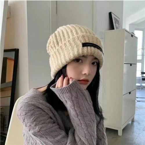 [다잇템]여자 폴딩 귀여운 울니트 골지 콘트라스트 비니