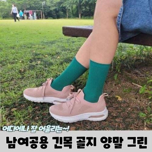 [셀럽하우스]골지 NHBB9127 학생 긴목 무지 그린 남여공용 양말
