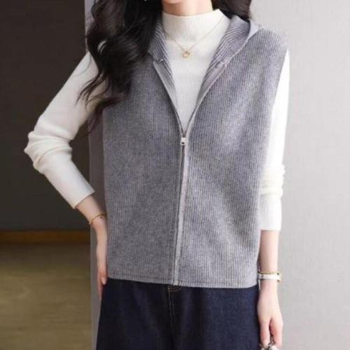 [옷자락] 여성 무지 골지 집업 조끼 레귤러핏 니트웨어